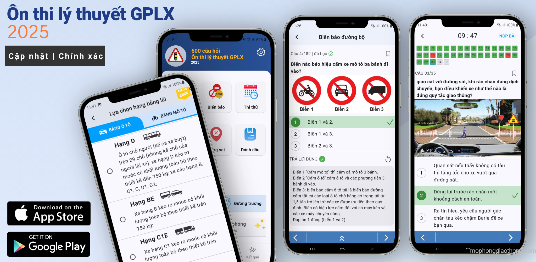 * Áp dụng bộ 600 câu hỏi theo hạng GPLX: